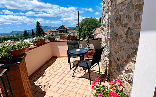 Al primo piano di ingresso si trovano: l'accogliente soggiorno, con un suggestivo camino; la cucina, completamente attrezzata con tutto ciò che occorre anche per lunghi soggiorni, una stanza da letto doppia con bagno. L'adiacente terrazzino, luminoso e assolato, affaccia direttamente sull'antica chiesetta di S. Salvatore. Il piano superiore, al quale si può accedere anche mediante ascensore interno, si trovano le due camere da letto con bagno, arredate con cura e dotate di tutti i comfort, e la splendida e fiorita terrazza, ideale per ammirare il tramonto durante l’aperitivo o per la colazione con vista sui colli circostanti e sul mare. Il terzo livello, situato al pian terreno, ospita altre 3 stanze con antistante un patio fiorito. La dolcezza di un clima fresco e ventilato d'estate e temperato d'inverno, permette un soggiorno in tutti i periodi dell'anno. Dinanzi alla nostra struttura vi è un'ampia area per parcheggio, ed una nuovissima struttura polisportiva (calcetto, tennis, fitness) a pochi metri dal B&B.